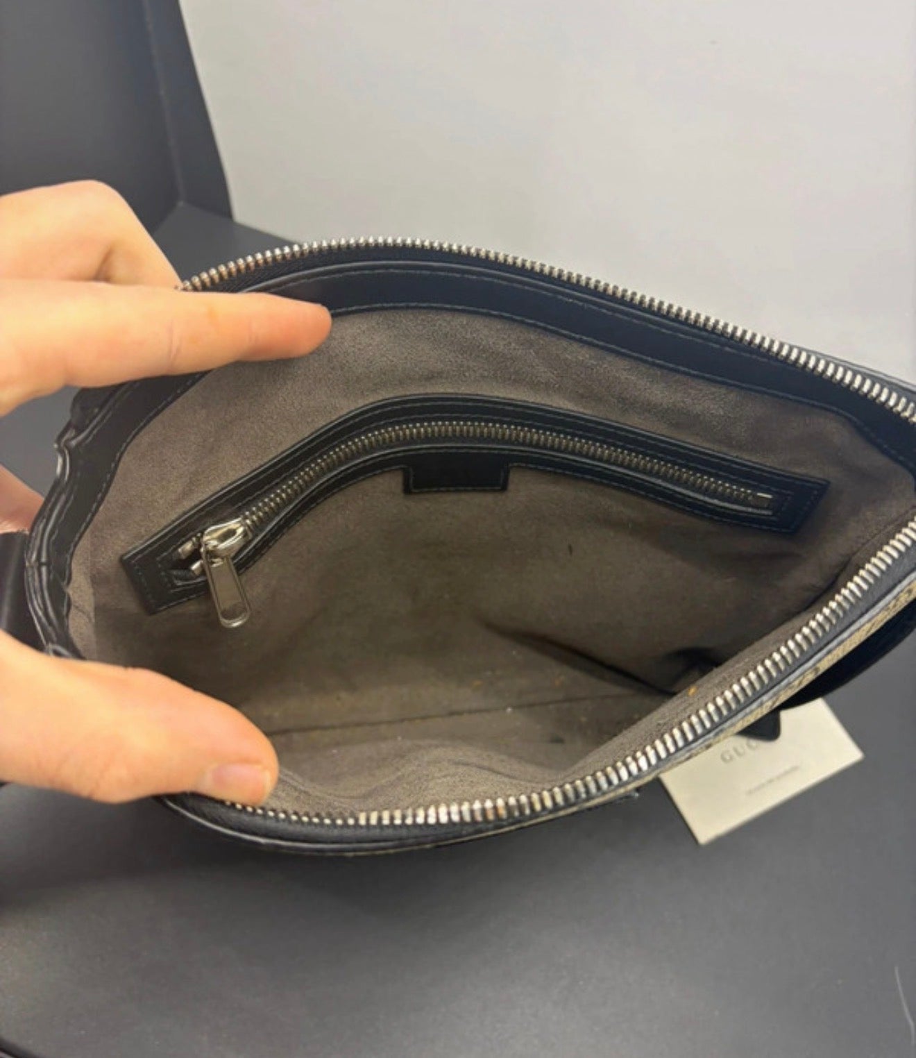 •Materiali: Tela rivestita in microfibra GG Supreme e finiture in pelle nera.