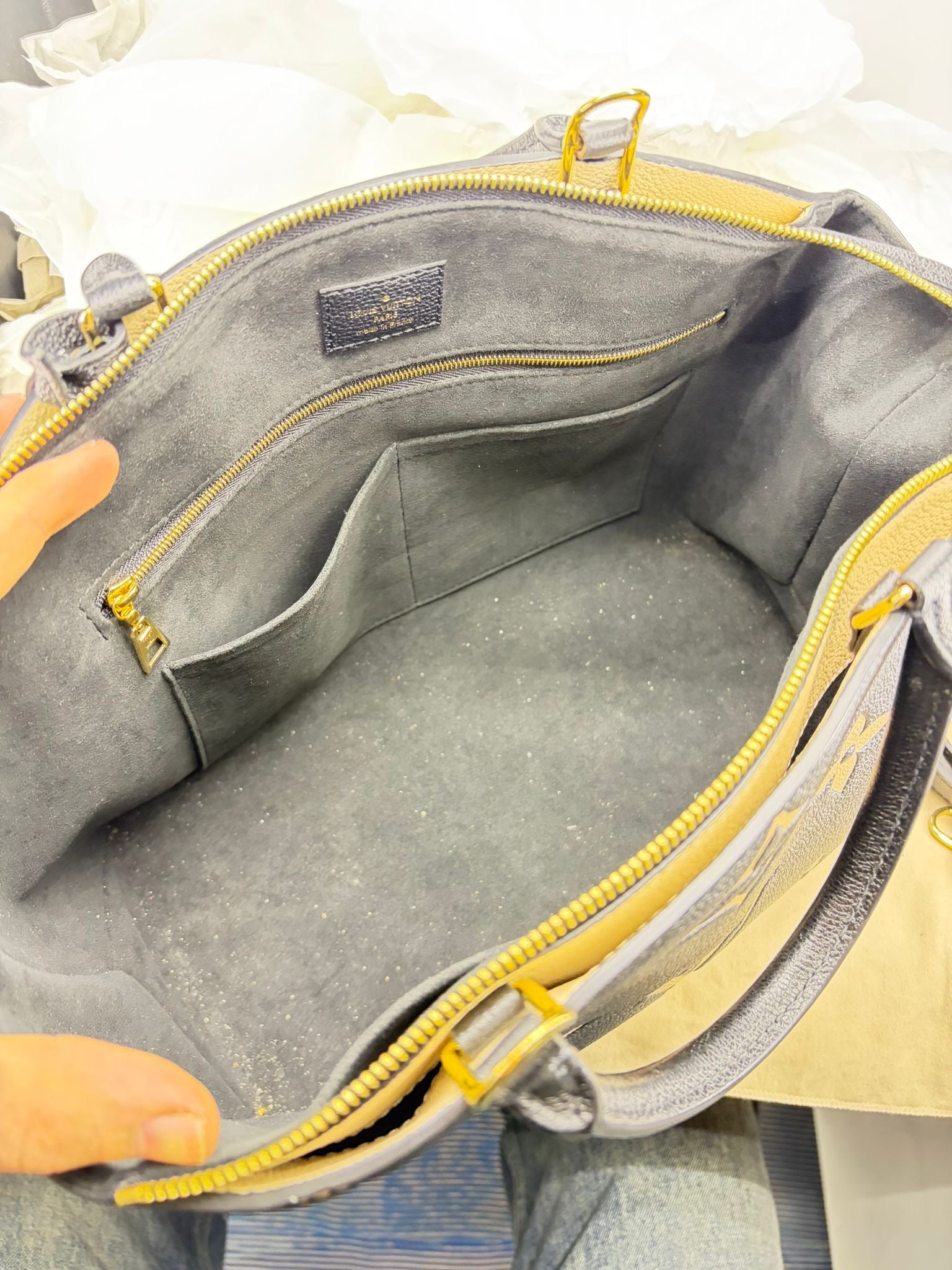 Louis Vuitton Grand Palais MM. È realizzata in pelle Monogram Empreinte bicolore (nero e beige) ed è nota per il suo design elegante e funzionale.